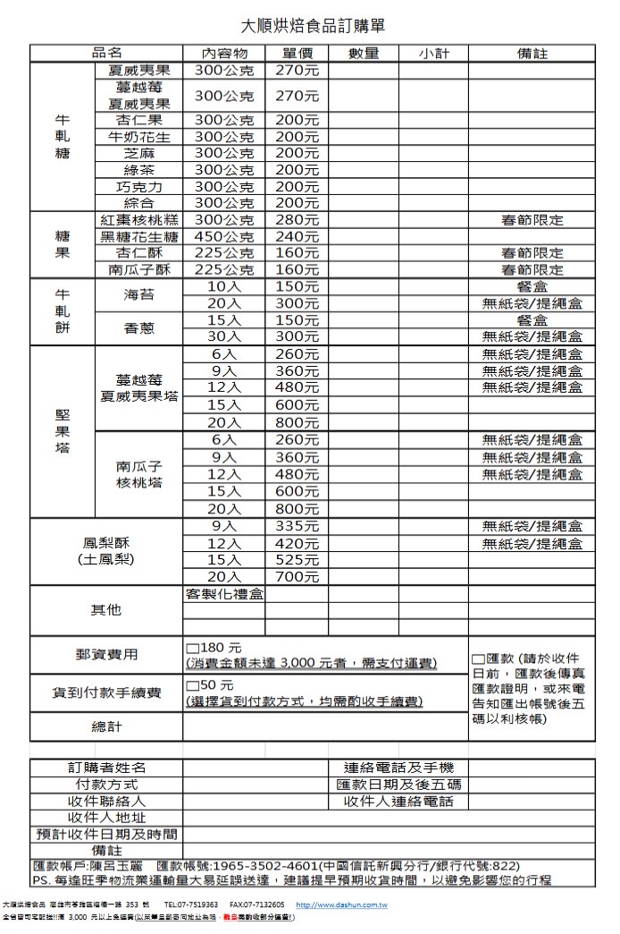 大順食品創立已近五十年,為老字號商店,堅持產品真材實料,不添加任何香料、防腐劑,保留牛軋糖的古早美味,加入新生命,要讓客人同時吃出食材的美味。 一個南台灣認真的小商店